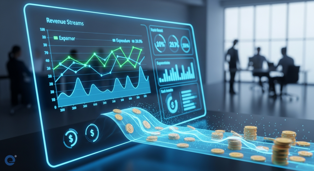 A digital dashboard displays clear charts and graphs, symbolizing efficient data analysis for cash flow management.