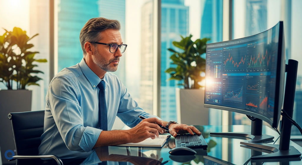 A manager reviews financial reports on a sleek dashboard, symbolizing clarity and control over business expenses.
