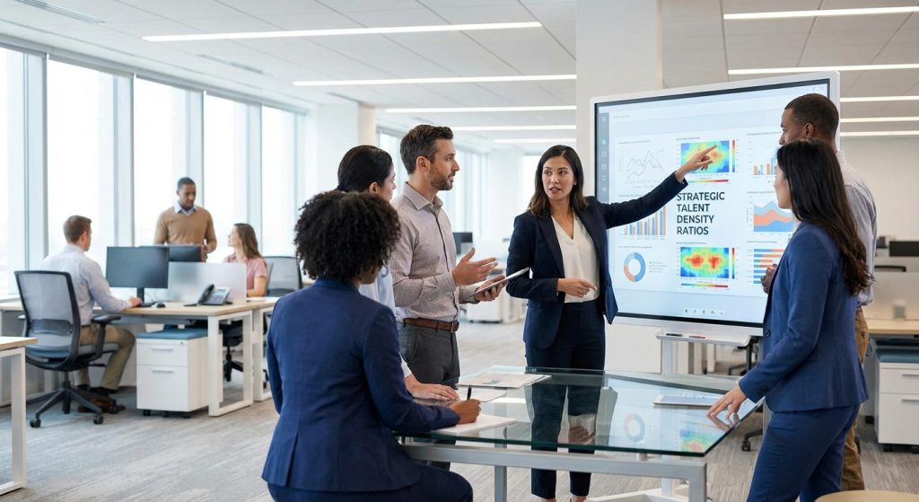 The talent density ratio offers a straightforward yet powerful method for quantifying your organization’s talent concentration. The formula is simple: