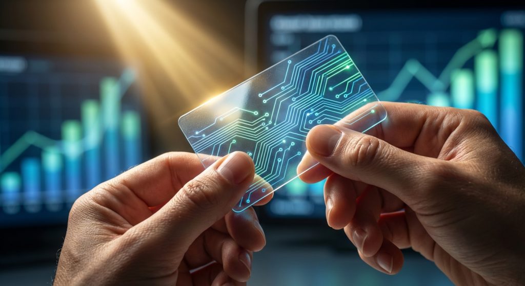 A strategist meticulously arranges a set of premium credit cards on a polished oak desk.